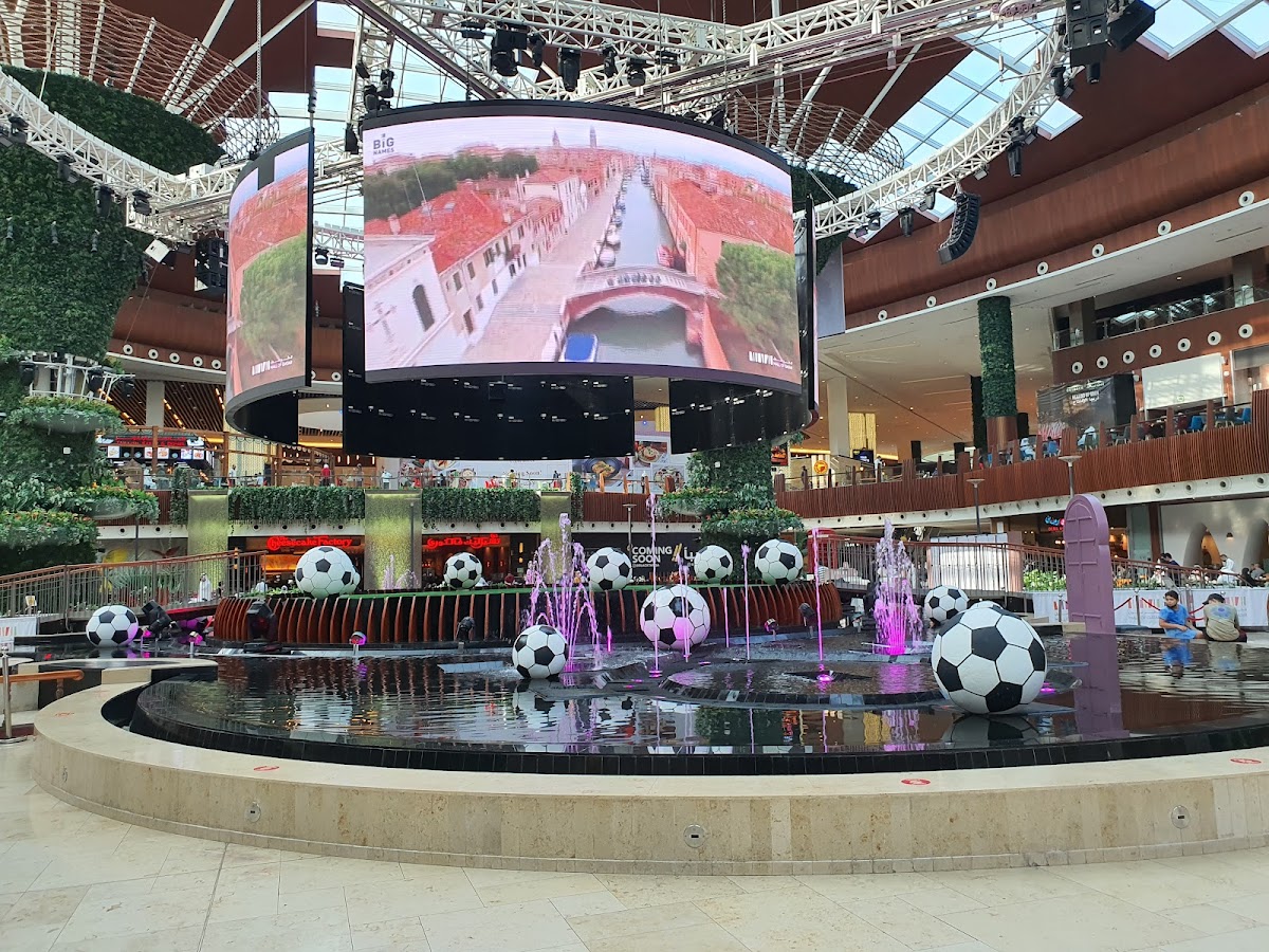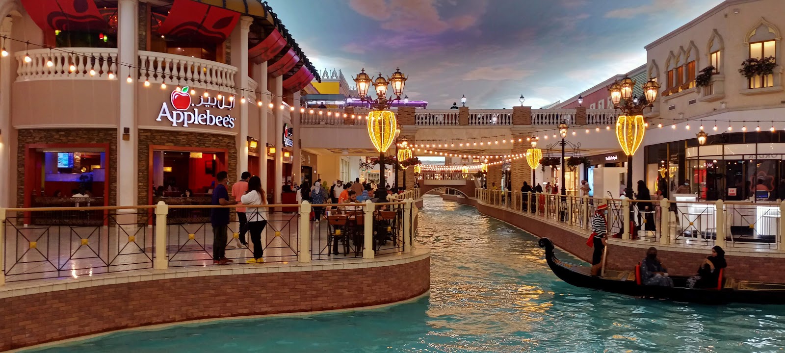 يتميز فيلاجيو مول بتصميمه المستوحى من مدينة البندقية الإيطالية، ويضم قناة مائية داخلية. يحتوي المول على مجموعة متنوعة من المتاجر والماركات العالمية، بالإضافة إلى قاعات سينما ومنطقة ترفيهية. (الموقع الجغرافي)