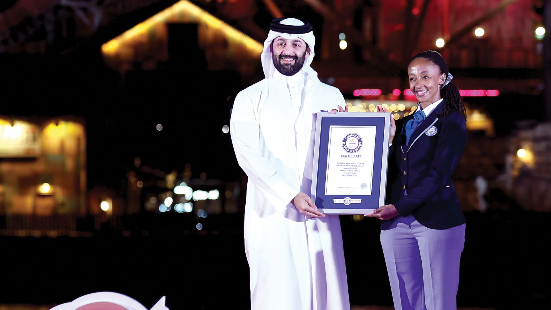 أكد الشيخ ناصر خلال كلمته أن هذا الإنجاز يعكس رؤية شركة قطيفان للمشاريع الهادفة إلى تقديم وجهة سياحية عالمية تمزج بين الأصالة والابتكار الترفيهي. وأضاف أن تحقيق هذا الرقم القياسي يُعزز من التزام الشركة بتوفير تجارب استثنائية تعكس الروح الإبداعية والتراث الثقافي لدولة قطر. وأوضح أن هذا النجاح ليس مجرد إنجاز ترفيهي، بل هو رمز يروج للثقافة القطرية ويعبر عن إبداعاتها على الساحة العالمية.